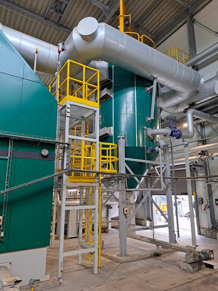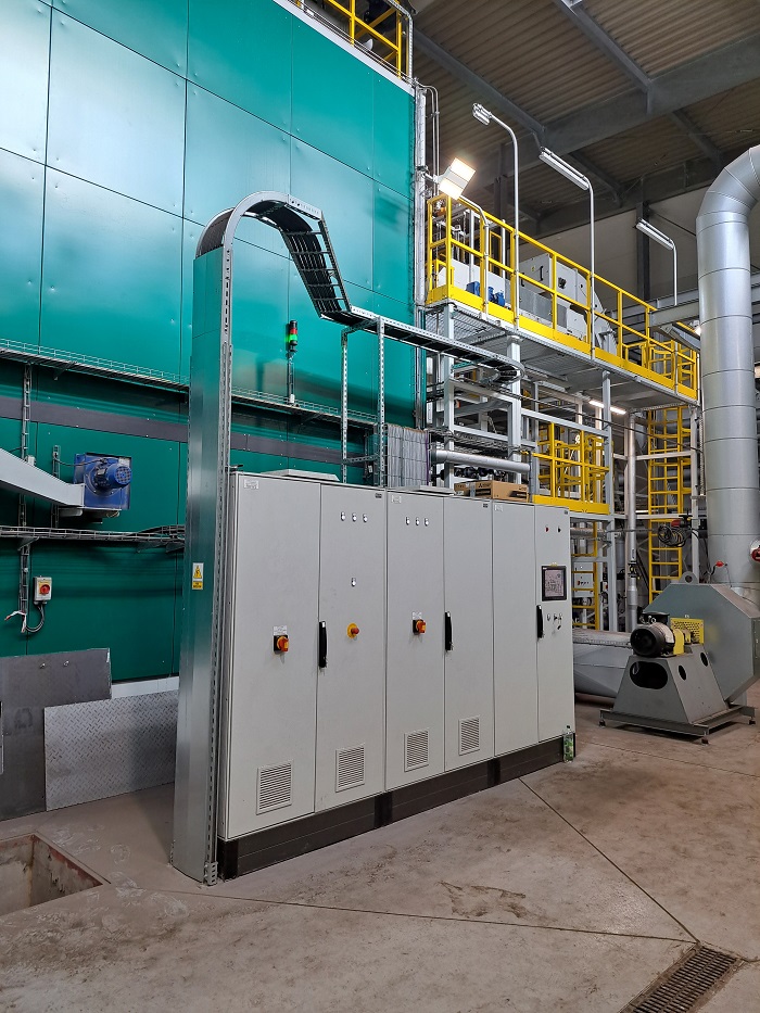 Zastosowany w kotle system hydraulicznego przesuwu rusztu umożliwia spalanie biomasy o wysokiej wilgotności. Tłokowy system podawania paliwa eliminuje ryzyko blokowania się zrębków w przypadku niejednorodnej gradacji surowca. Innowacyjne rozwiązania zastosowane w tej instalacji pozwalają na efektywny odzysk energii cieplnej z odpadów poprodukcyjnych o niskiej wartości opałowej.