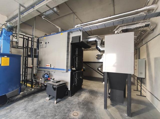 Pierwotnie w zakładzie produkcyjnym miał stanąć kocioł biomasowy, z serii produkcyjnej Ekomat II. Po dokładnej analizie i rozmowach z inwestorem podjęto decyzję o modyfikacji wstępnych założeń - paliwo, jakim dysponuje zakład produkcyjny nie kwalifikuje się do biomasy. Aby nowo powstająca instalacja spełniała wszystkie wymagania i obwarowania prawne nasz zespół zaoferował projekt spalarni odpadów pochodzących z produkcji płyt meblarskich - Ekomat RTPO wraz ze zbiornikiem buforowym paliwa oraz filtrem elektrostatycznym. Kocioł przystosowany do przeprowadzania procesu termicznego przekształcania odpadów zasadniczo różni się budową od kotłów biomasowych. Najistotniejszą różnicą jest kubatura komory spalania - w kotłach z serii Ekomat RTPO komora spalania posiada dodatkową komorę dopalania, dzięki której czas przebywania gazów spalinowych w środowisku wysokich temperatur jest wydłużony. Dodatkowo, każda jednostka wyposażona jest w przyłącze recyrkulacji spalin oraz pomocniczy palnik olejowy bądź gazowy. Aby instalacja spełniała wszystkie wymagania dotyczące emisji szkodliwych związków chemicznych do atmosfery, musi być wyposażona w filtr elektrostatyczny, zapewniający możliwie najwyższe odpylenie spalin wylotowych.