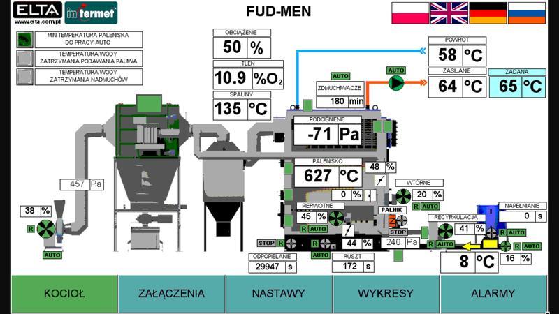 Jak w każdej instalacji serii RTPO, kocioł został wyposażony w palnik olejowy, system recyrkulacji spalin oraz filtr elektrostatyczny firmy Elenergy, gwarantujący stężenie cząstek stałych w spalinach wylotowych na poziomie <15 mg/m3 (zgodnie z aktualnym Rozporządzeniem Ministra Środowiska).