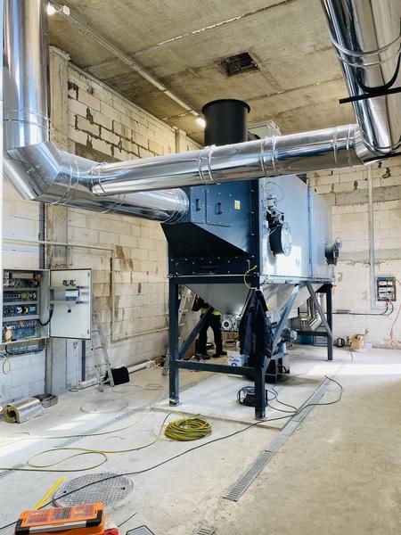 Poza sercem instalacji - blokiem kotła i osadzonym na nim wymiennikiem ciepła, w kotłowni znajdują się dwa urządzenia, gwarantujące maksymalną redukcję emisji cząstek stałych do atmosfery. Pierwszym stopniem filtracji jest multicyklon, wykorzystujący siłę odśrodkową i grawitacji w procesie odpylania spalin. Multicyklon ma zdolność do separacji cząstek stałych o największej masie i dużych wymiarach, jednakże nie jest skuteczny w odniesieniu do najdrobniejszych, a zarazem najbardziej szkodliwych cząstek. Dlatego też instalacja termicznego przekształcania odpadów wyposażona jest w filtr elektrostatyczny, produkcji Elenergy. Elektrofiltry gwarantują najwyższą efektywność odpylania spalin - ze względu na szereg zjawisk elektrostatycznych, zachodzących wewnątrz komory odpylacza, mają one zdolność do separacji nawet najmniejszych cząstek stałych. Ich dodatkowymi atutami są niskie opory hydrauliczne, szeroki zakres temperatur, w których mogą pracować oraz niskie koszty eksploatacyjne.
