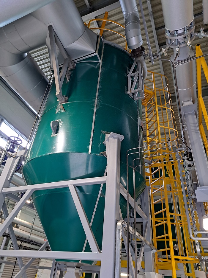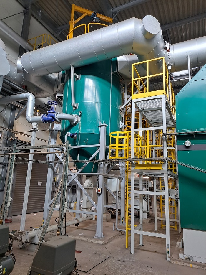 Zastosowany w kotle system hydraulicznego przesuwu rusztu umożliwia spalanie biomasy o wysokiej wilgotności. Tłokowy system podawania paliwa eliminuje ryzyko blokowania się zrębków w przypadku niejednorodnej gradacji surowca. Innowacyjne rozwiązania zastosowane w tej instalacji pozwalają na efektywny odzysk energii cieplnej z odpadów poprodukcyjnych o niskiej wartości opałowej.