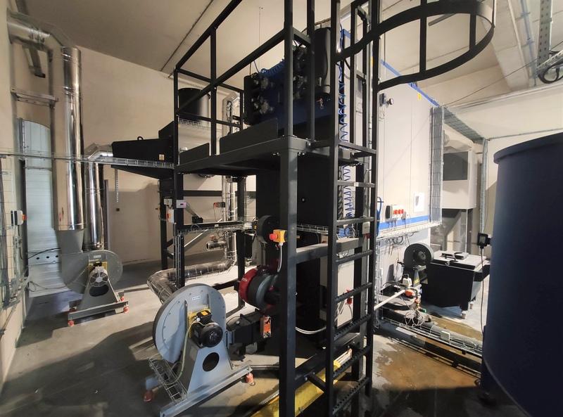 Pierwotnie w zakładzie produkcyjnym miał stanąć kocioł biomasowy, z serii produkcyjnej Ekomat II. Po dokładnej analizie i rozmowach z inwestorem podjęto decyzję o modyfikacji wstępnych założeń - paliwo, jakim dysponuje zakład produkcyjny nie kwalifikuje się do biomasy. Aby nowo powstająca instalacja spełniała wszystkie wymagania i obwarowania prawne nasz zespół zaoferował projekt spalarni odpadów pochodzących z produkcji płyt meblarskich - Ekomat RTPO wraz ze zbiornikiem buforowym paliwa oraz filtrem elektrostatycznym. Kocioł przystosowany do przeprowadzania procesu termicznego przekształcania odpadów zasadniczo różni się budową od kotłów biomasowych. Najistotniejszą różnicą jest kubatura komory spalania - w kotłach z serii Ekomat RTPO komora spalania posiada dodatkową komorę dopalania, dzięki której czas przebywania gazów spalinowych w środowisku wysokich temperatur jest wydłużony. Dodatkowo, każda jednostka wyposażona jest w przyłącze recyrkulacji spalin oraz pomocniczy palnik olejowy bądź gazowy. Aby instalacja spełniała wszystkie wymagania dotyczące emisji szkodliwych związków chemicznych do atmosfery, musi być wyposażona w filtr elektrostatyczny, zapewniający możliwie najwyższe odpylenie spalin wylotowych.