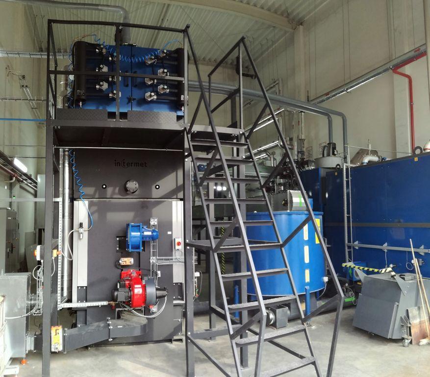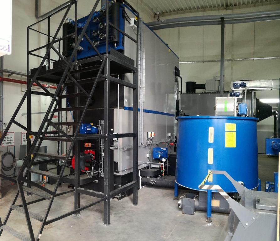 Zespół Energetyczny Ekomat RTPO jest w pełni przystosowany do procesu termicznego przekształcania odpadów pochodzenia drzewnego, zakwalifikowanych jako „inne niż niebezpieczne”, w tym odpadów poprodukcyjnych z fabryk mebli (płyt MDF, HDF). Maksymalna wilgotność paliwa wynosi 30%, a gradacja - do 30 mm. Ceramiczna komora spalania wyposażona jest w palenisko retortowe oraz ruchomy ruszt z napędem hydraulicznym. Blok kotła został powiększony o dodatkową komorę dopalania zapewniającą czas przebywania gazów spalinowych w środowisku wysokich temperatur na poziomie 2 sekund, za ostatnim doprowadzeniem powietrza. Standardem wyposażenia każdej instalacji termicznego przekształcania odpadów są: -system recyrkulacji spalin, przyczyniający się do ograniczenia emisji tlenków azotu (NOx); |